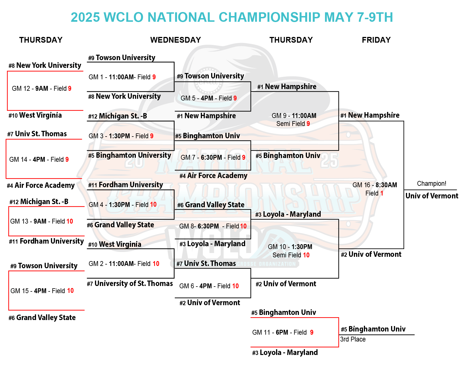 Schedule- Twelve teams compete in this year’s event.
